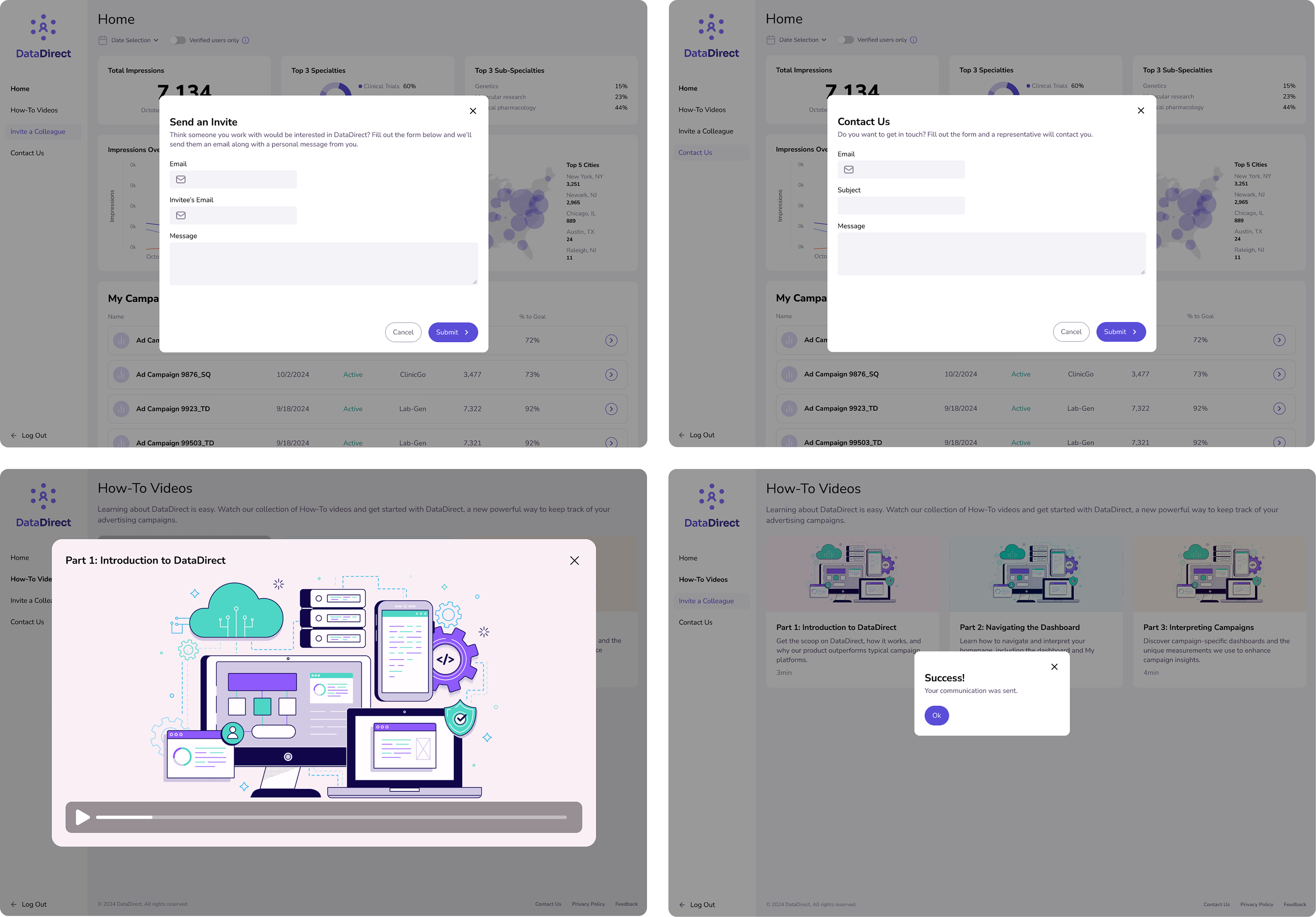 Testing confirmed that DataDirect directly addressed client pain points, and users were able to successfully navigate the prototype and complete key flows without assistance.