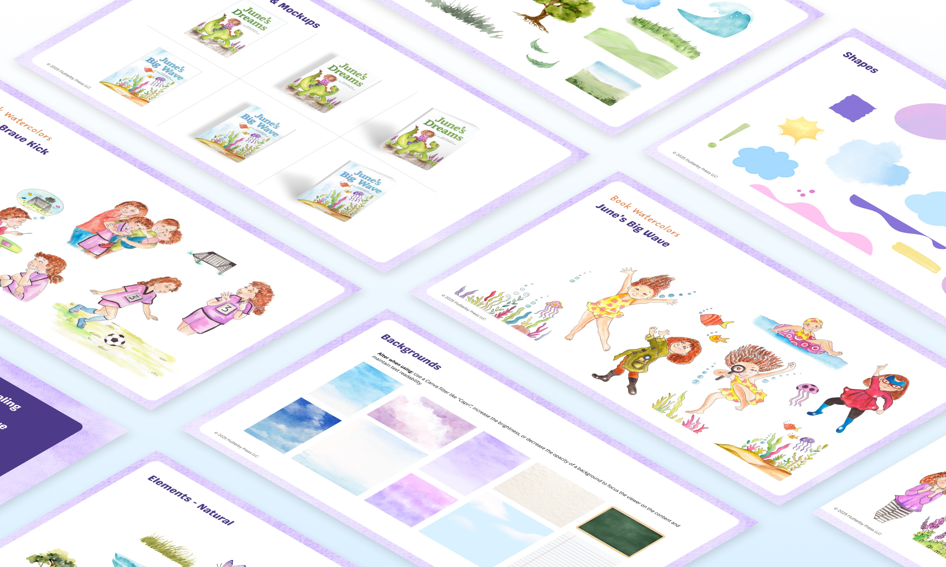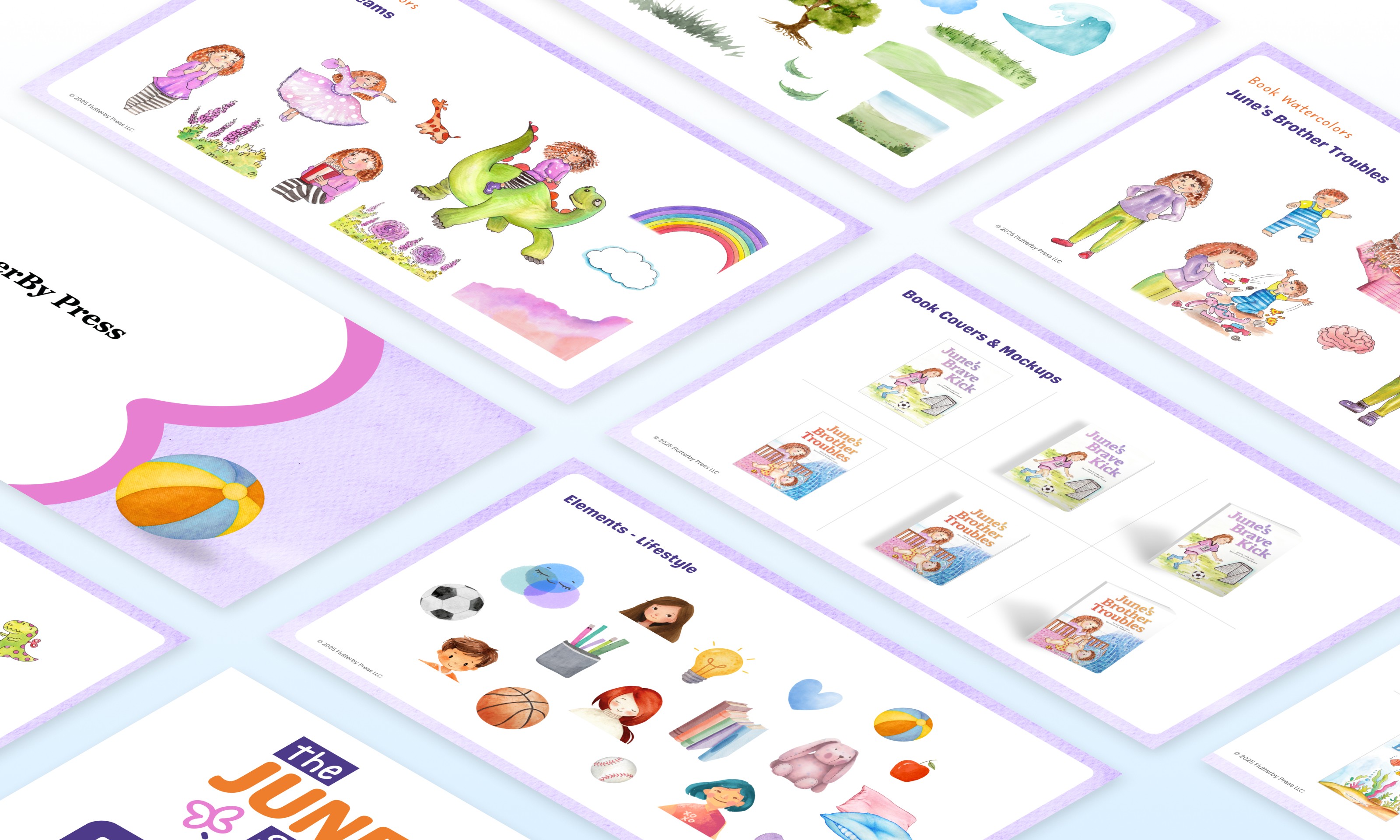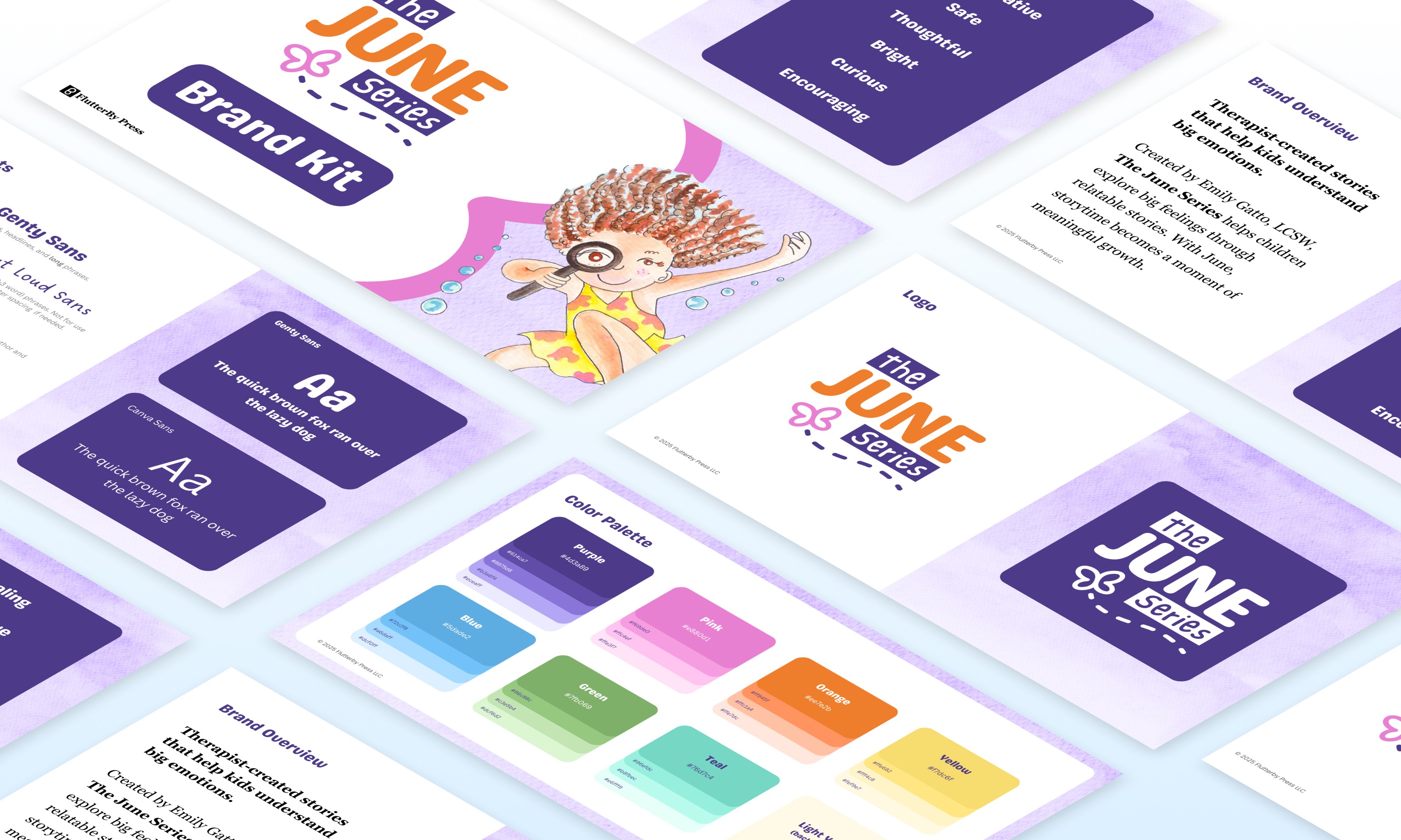 The June Series is a therapeutic children’s book series designed to help kids explore big feelings. With engaging stories by Emily Gatto, LCSW and watercolor illustrations by Fernling Creative, the series creators wanted a playful and bold visual identity to match its audience.