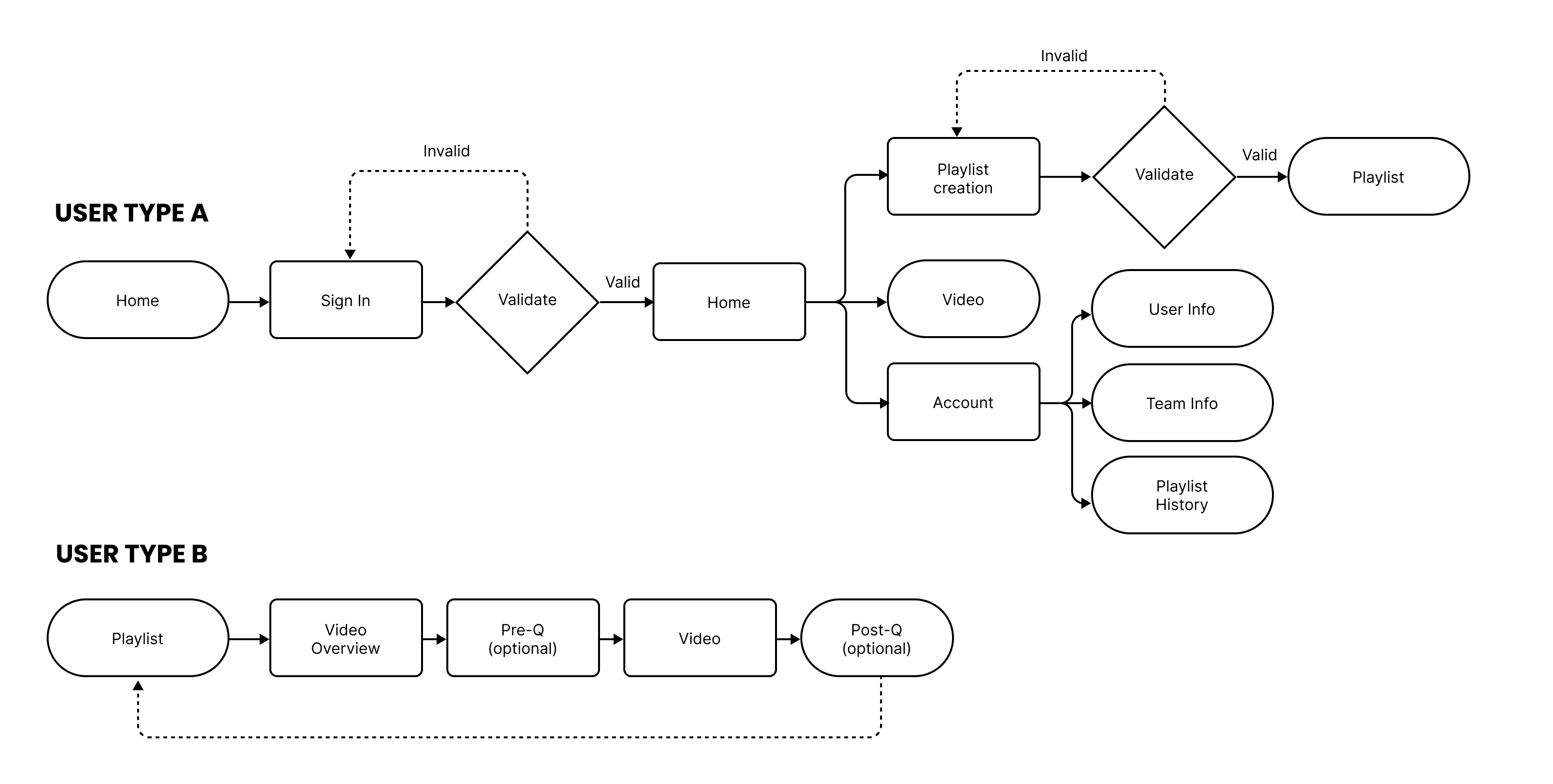 Two different user flows were necessary to support the providers and patients using the platform.